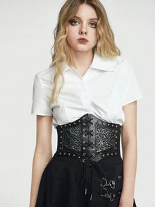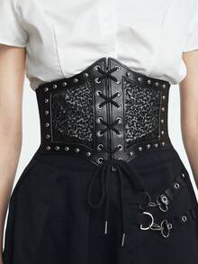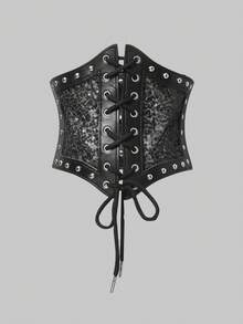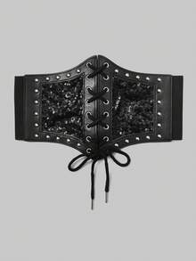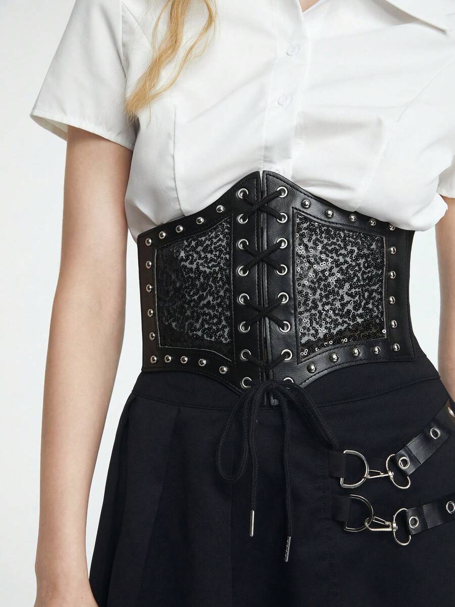 Grunge Punk 1pc Women Lace Up Contrast Sequin Corset Belt