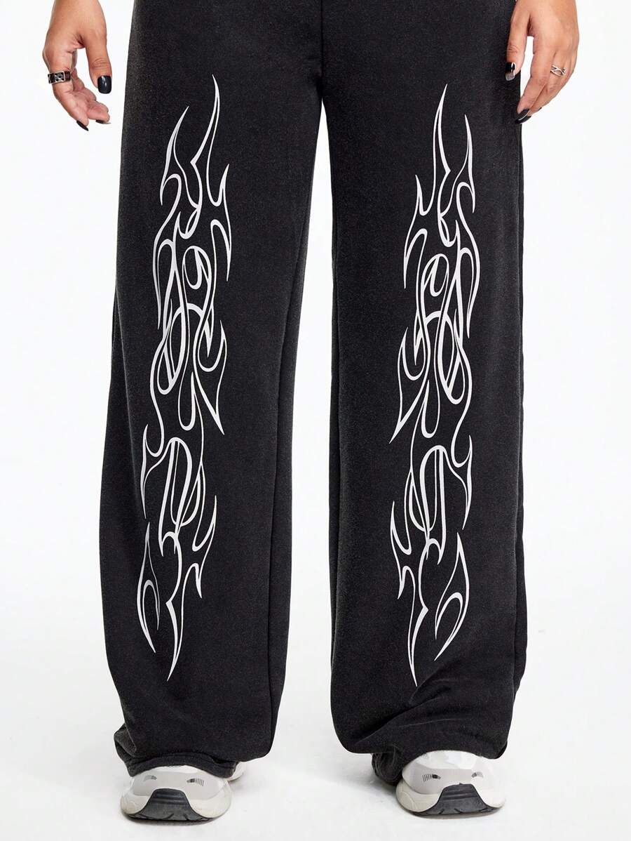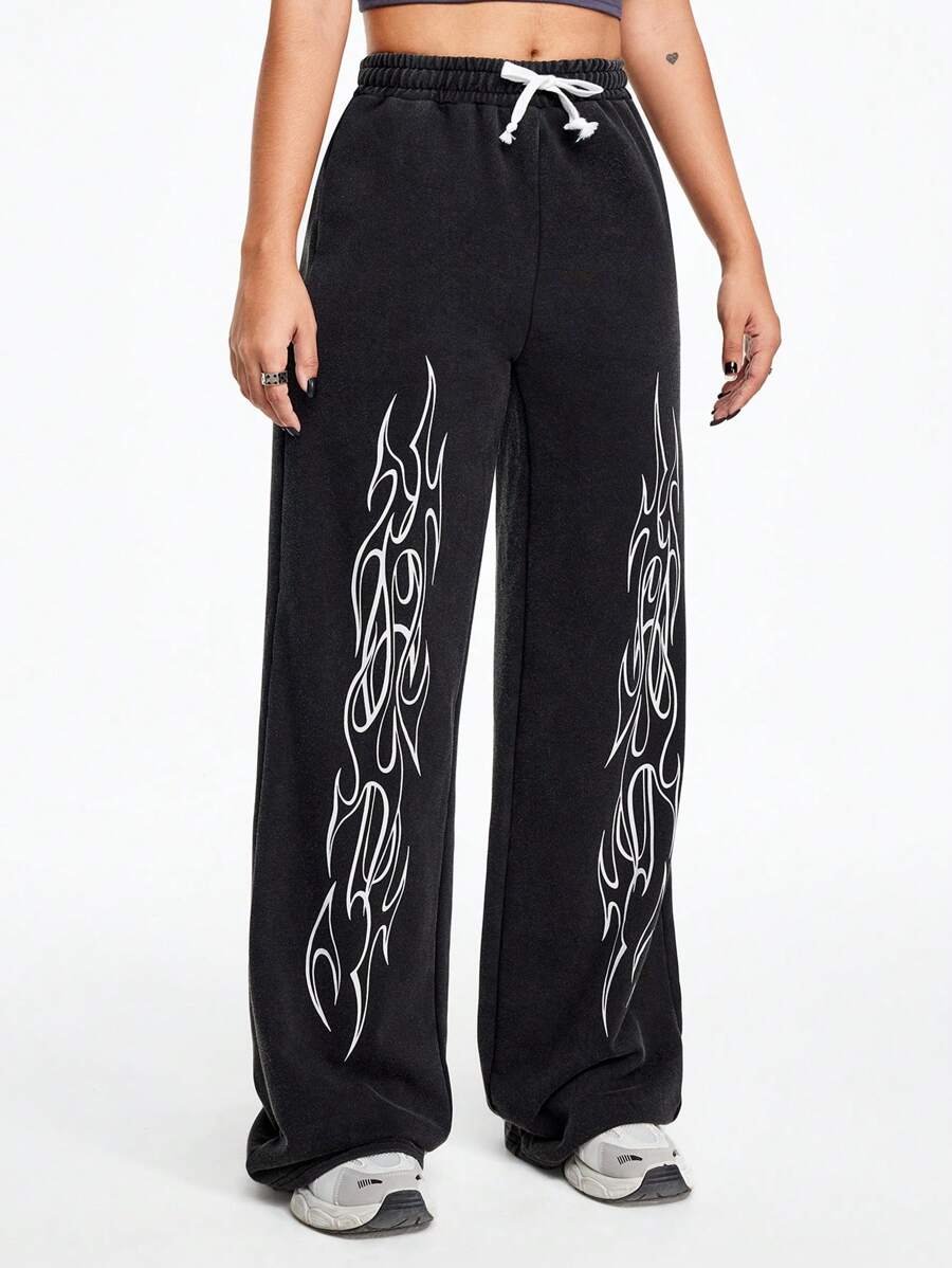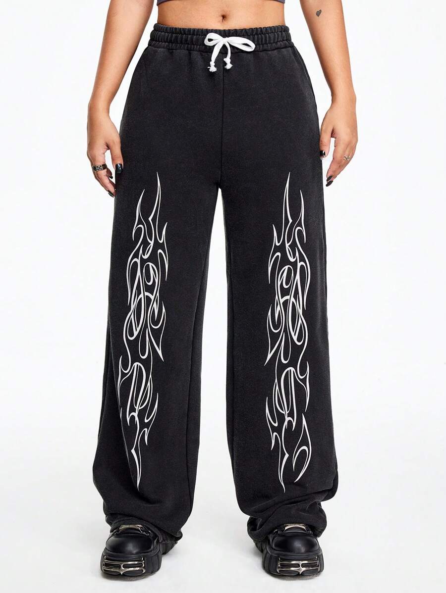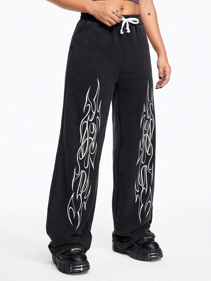 Grunge Punk Women Drawstring Straight Loose Versatile Elastic Waist Tie Dye Print Pants