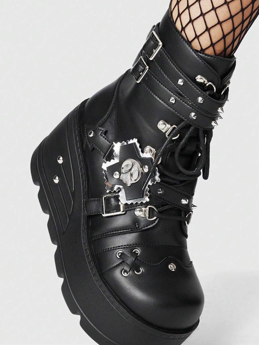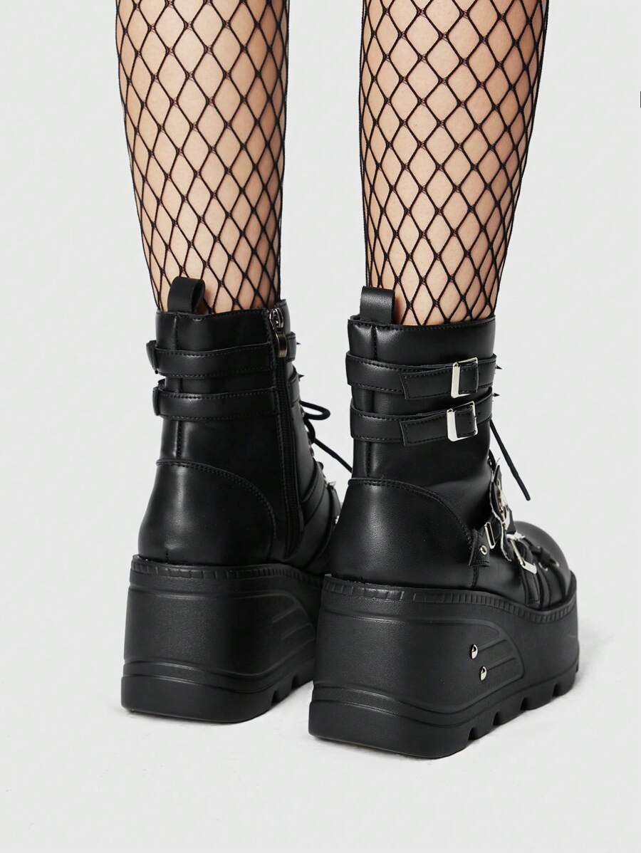 Grunge Punk Women Mid-Calf Boots, Casual & Stylish For Daily Wear Spring Shoes