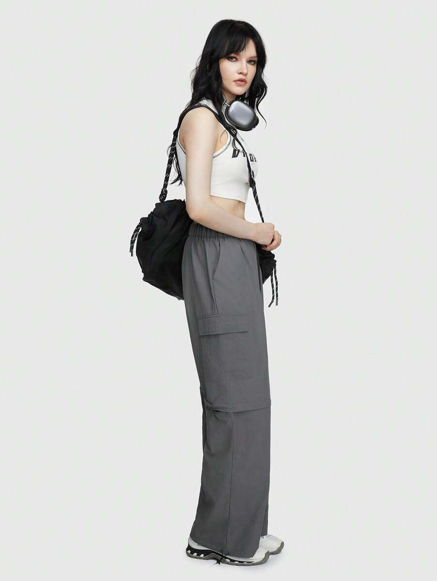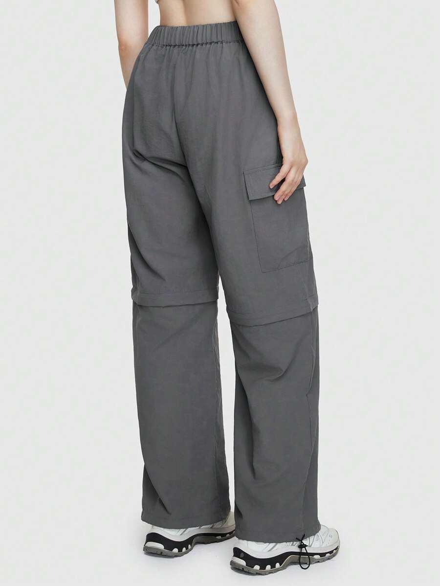 Grunge Punk Women'S Cargo Multiple Pockets Straight-Leg Pants (Convertible,Adjustable-Length)