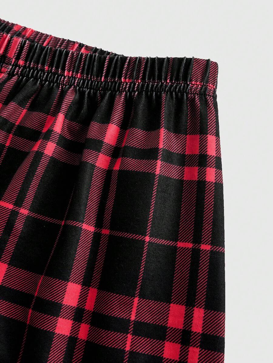Grunge Punk Women Summer Dark Punk Font Printed Short Sleeve T-Shirt Plaid Shorts Casual Sleepwear Set