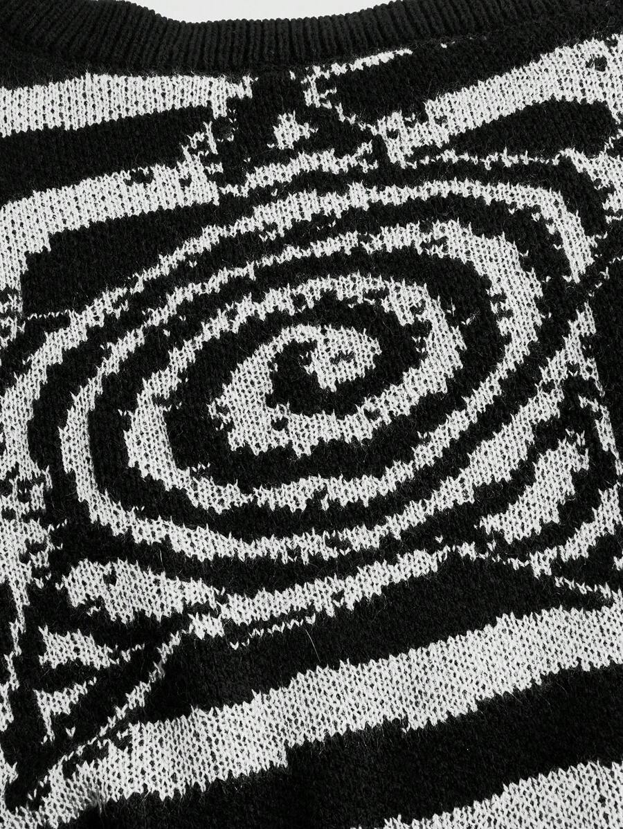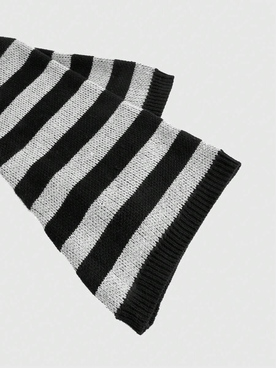 Grunge Punk Women's Asymmetrical Collar Striped Sweater With Star Pattern