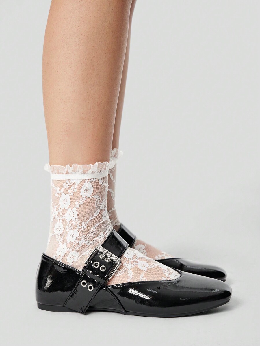 Grunge Punk Women's Black Loafers Strap Square Toe Mules Soft Sole Formal Work Flat Shoes