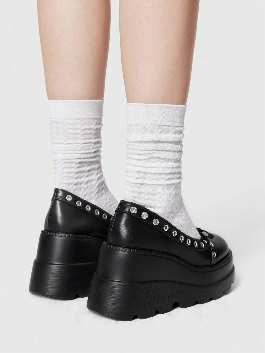 Grunge Punk Women's Black Punk Gothic Strap Mary Jane Small Leather Shoes, Academy Style Loafers, Platform Thick Sole Pumps