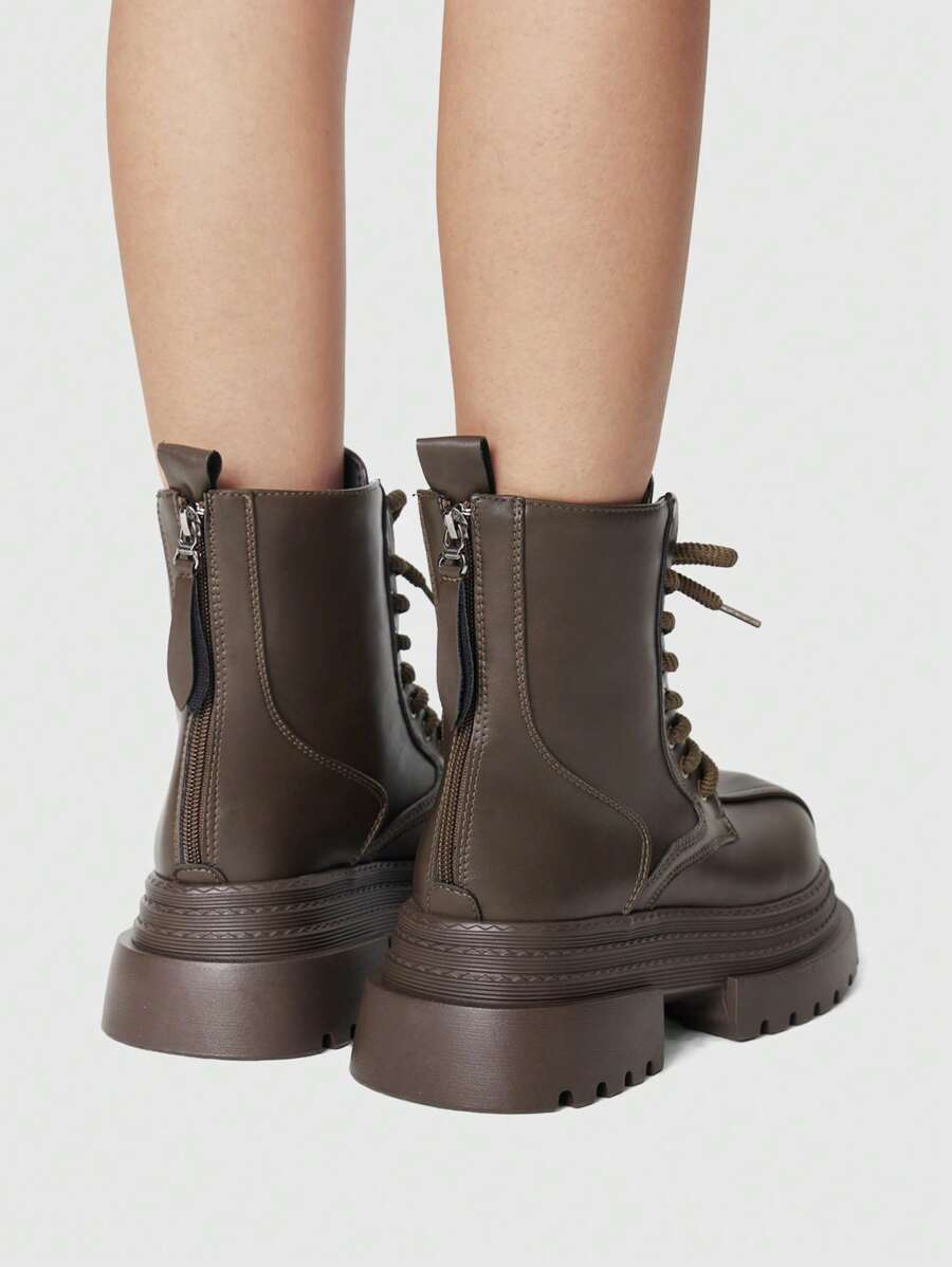 Grunge Punk Women's Brown Rock Punk Gothic Platform Ankle Boots With Lace-Up And Back Zipper, Edgy Motorcycle Boots Spring Shoes