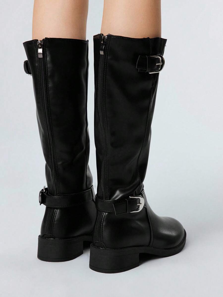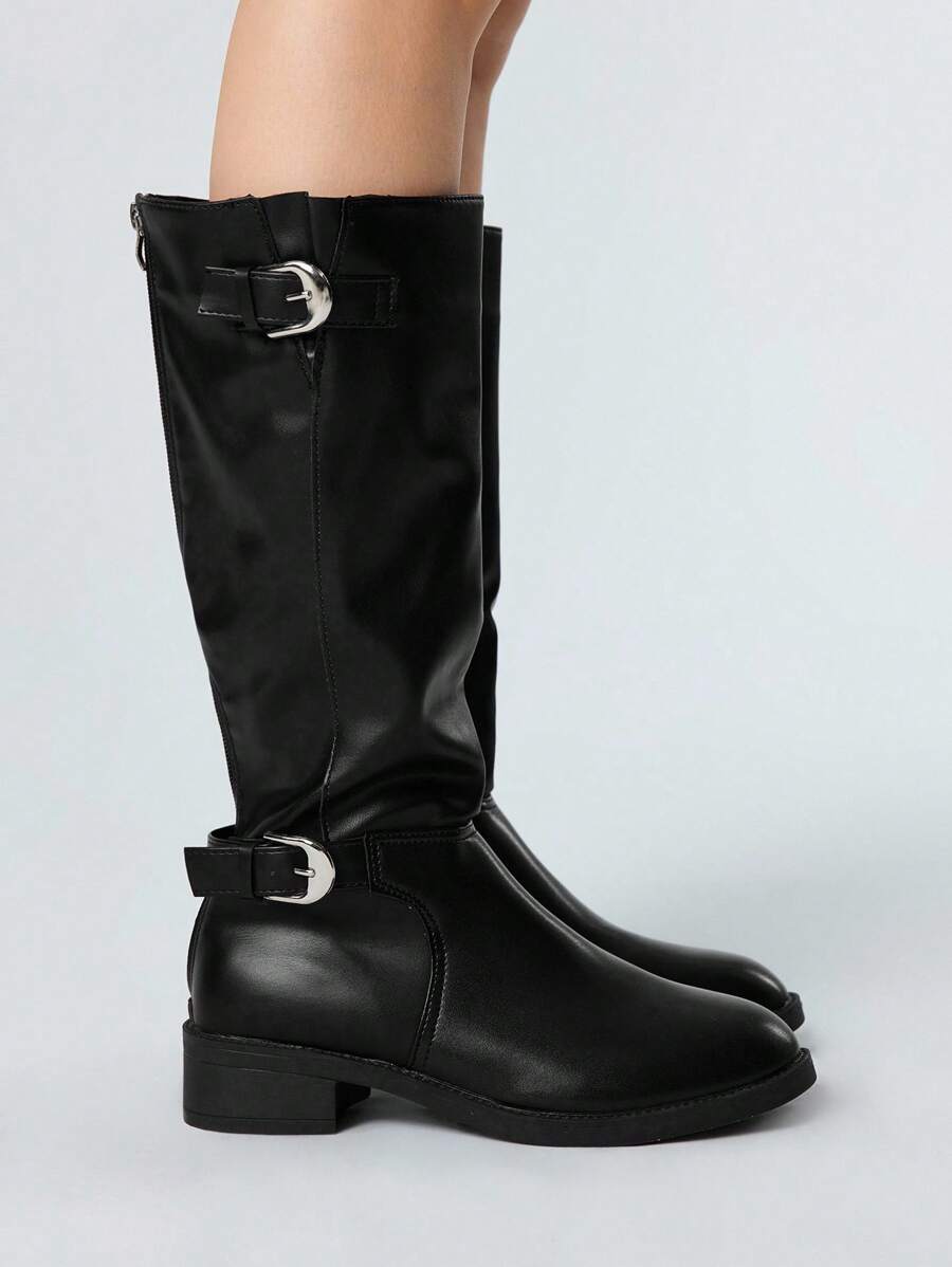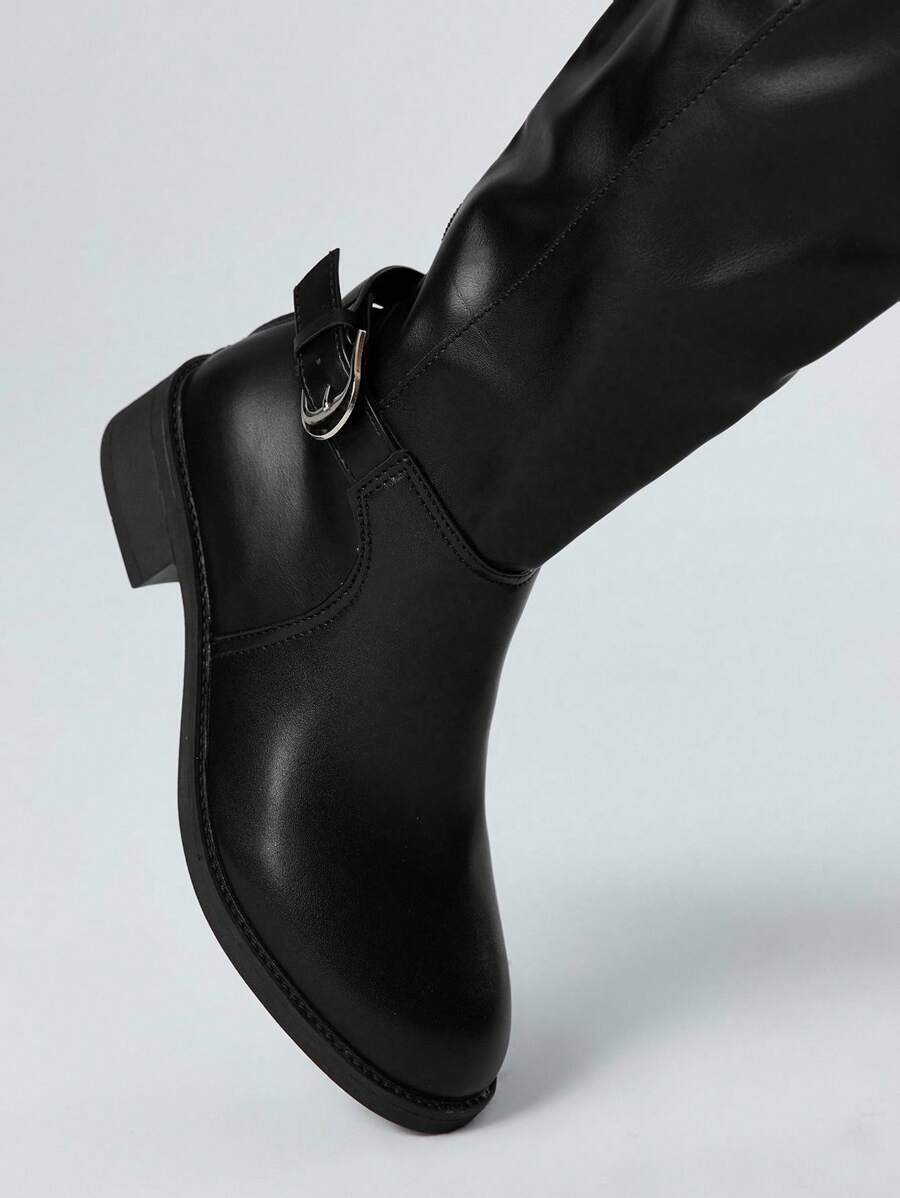 Grunge Punk Women's Dark Rock Punk Goth Leather High-Top Pointed Toe Buckle Strap Knee-High Boots, Halloween