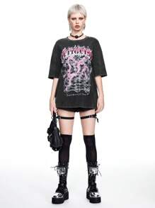 Grunge Punk Women's Distressed Punk Flame & Lightning Print T-Shirt