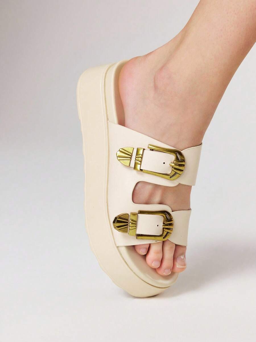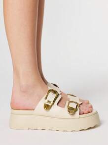 Grunge Punk Women's Fashion Brown Thick Sole Flat Sandals
