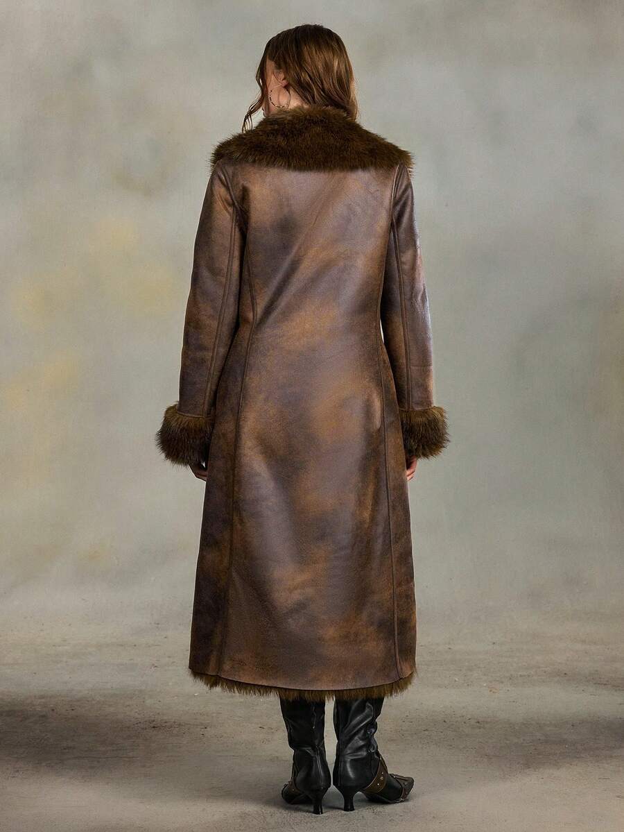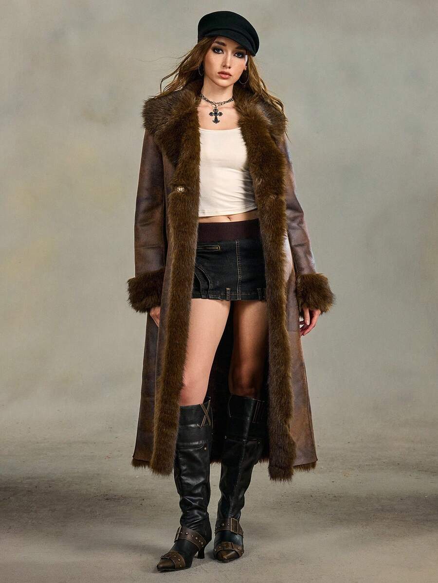 Grunge Punk Women's Fluffy Fashion Versatile Vacation Faux Fur Collar Long Sleeve Open Front Jacket, Autumn/Winter