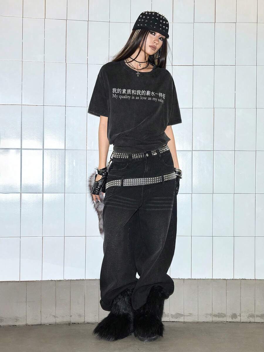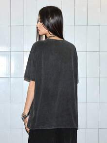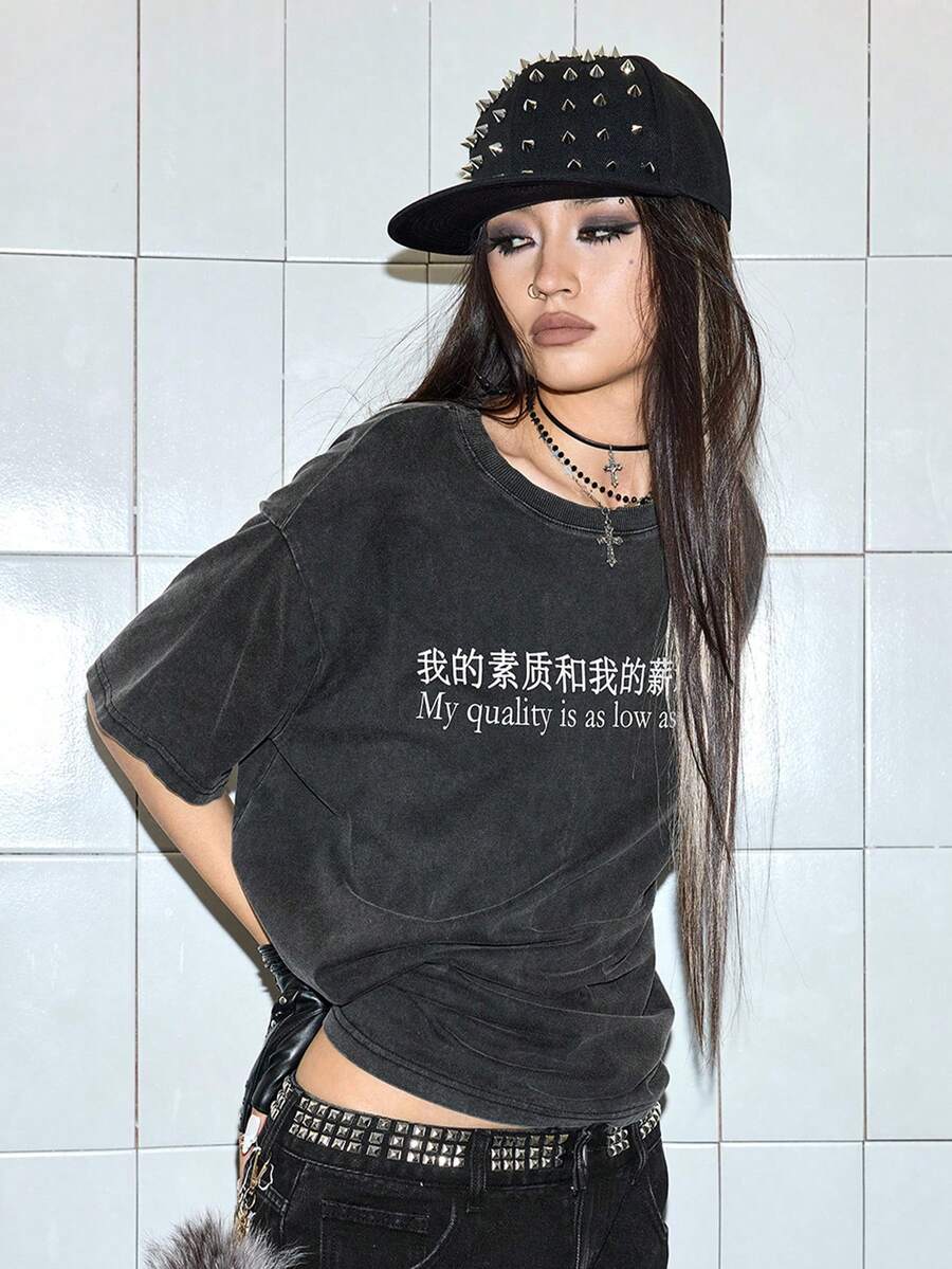 Grunge Punk Women's Loose Fit Graphic Slogan Print T-Shirt