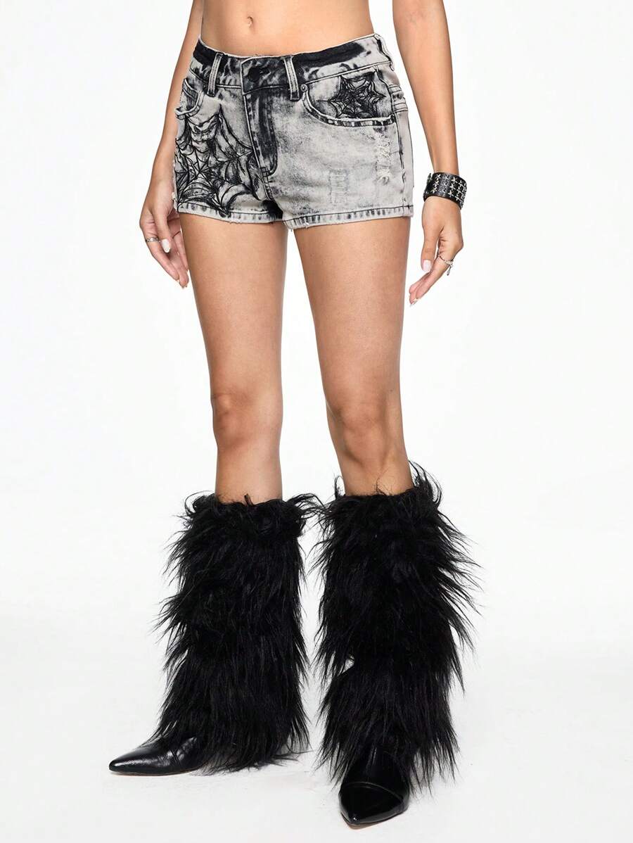 Grunge Punk Women's Punk Spider Web Print Low-Waist Denim Hotpants Shorts Outfits Women Summer Outfits For Women Shorts,Summer,Summerouis ,Summer Cothes,Streetwear