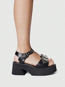 Grunge Punk Women's Punk Style Round Toe Thick Sole PU Leather Multi-Strap Wedge Sandals, Suitable For Graduation Photos, Professional Occasions