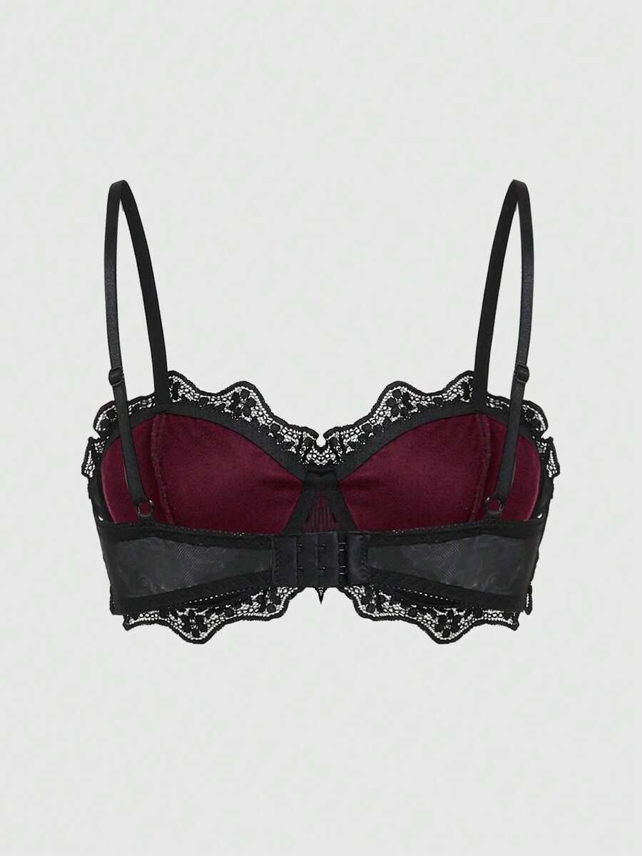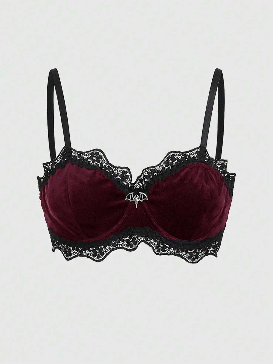Grunge Punk Women's Steel Hoop Velvet & Lace Bat Pendant Bralette