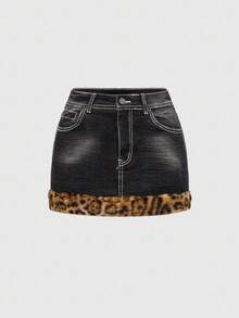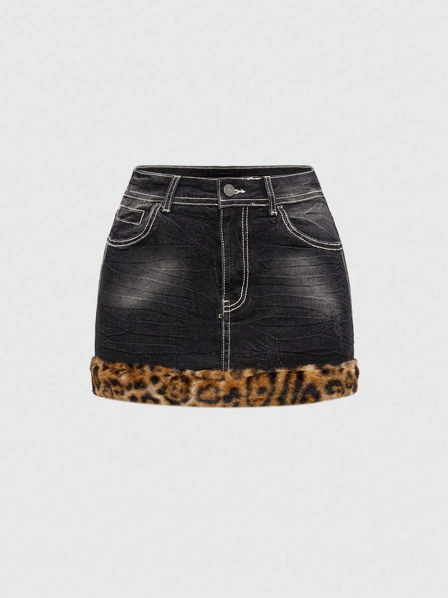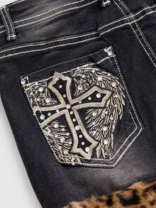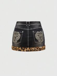 Grunge Punk Women's Y2K Baddie Autumn/Winter Denim Mini Skirt With Embroidered Wings