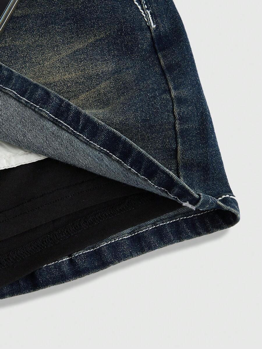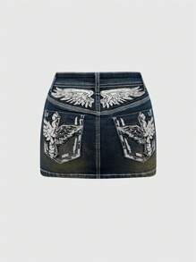 Grunge Punk Y2K Cross & Wing Embroidered Beaded High Elasticity Women's Mini Denim Skirt (With Leggings), Colorful Contrast Stitching