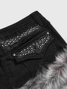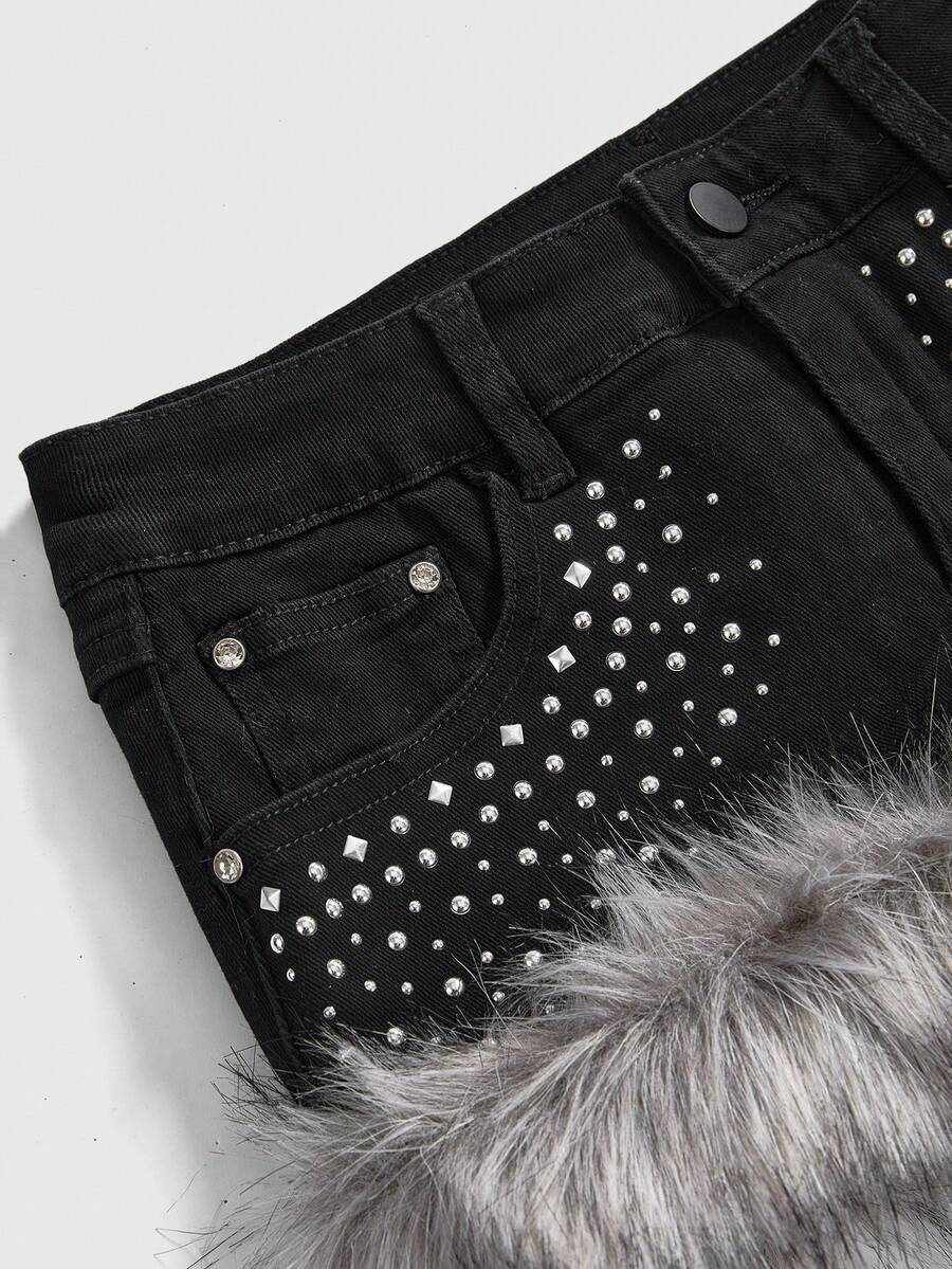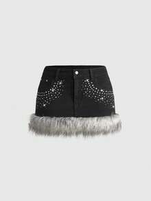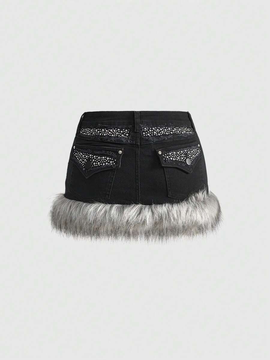 Grunge Punk Y2K Fuzzy Super Low-Rise Mini Denim Skirt For Women