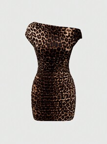 Grunge Punk Y2K Gyaru Leopard Print Sexy Asymmetrical Neck Bodycon Mini Dress
