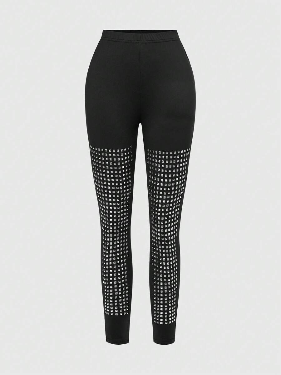 Grunge Punk Y2K Punk Cross Rivet Design Fitted Versatile Women Leggings