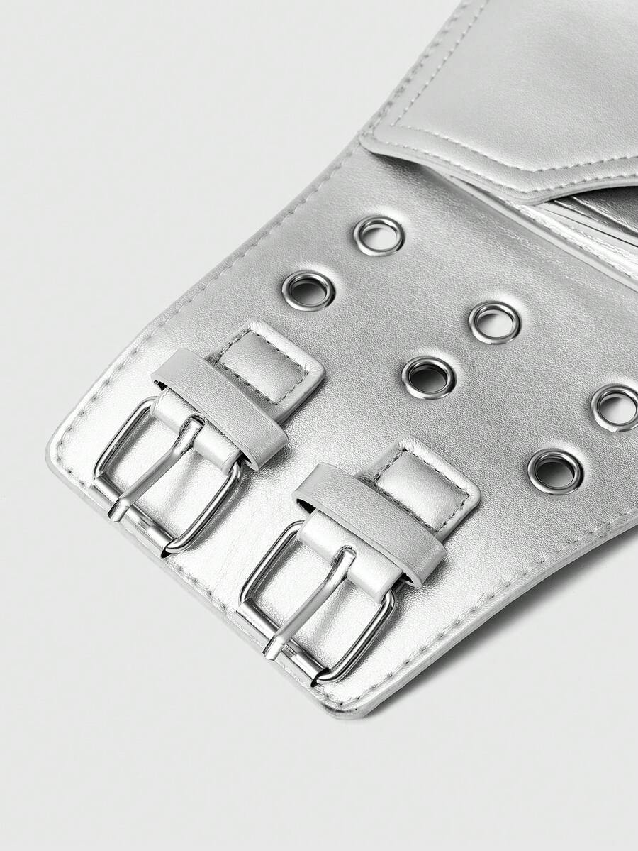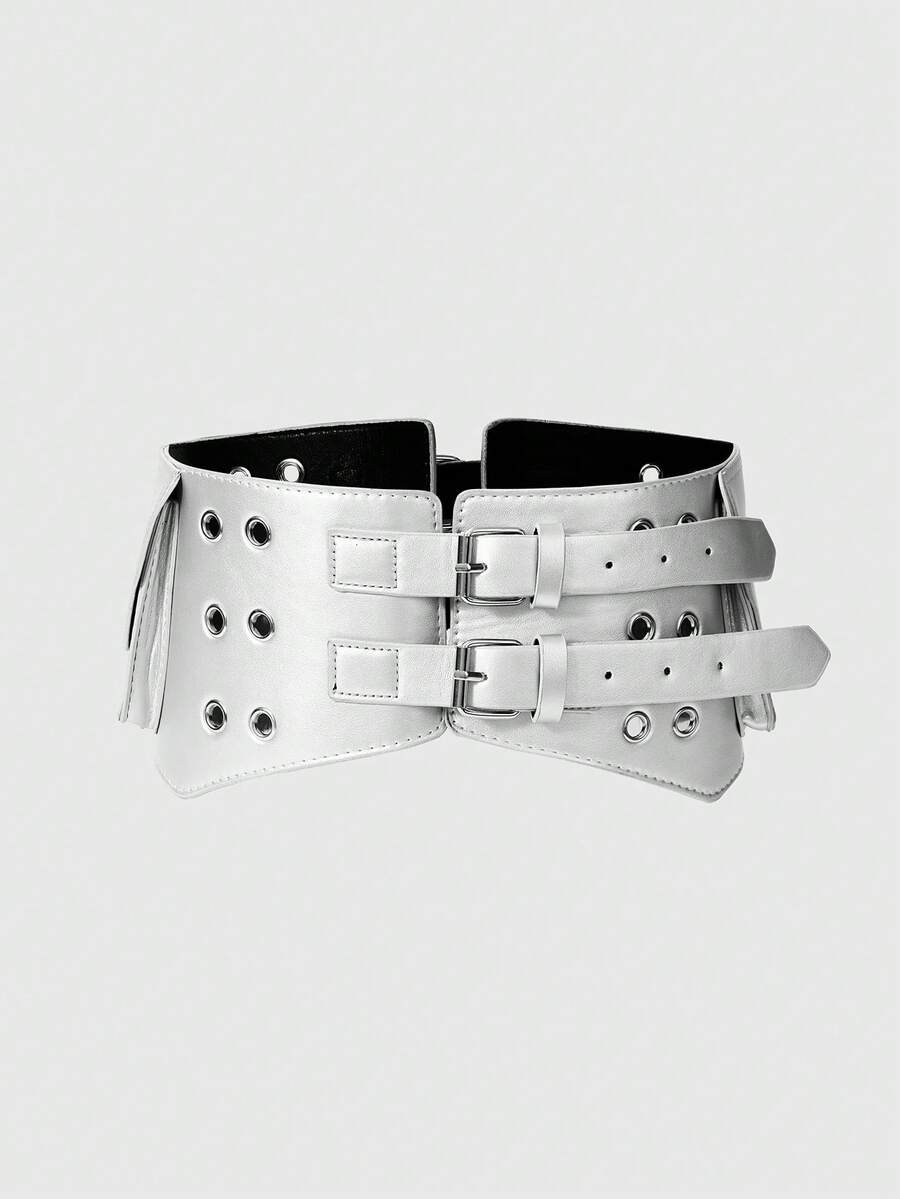 Grunge Punk Y2K Punk Style Black Metal Rivet Eye Multi-Pocket Adjustable Metal Buckle Fanny Pack For Women