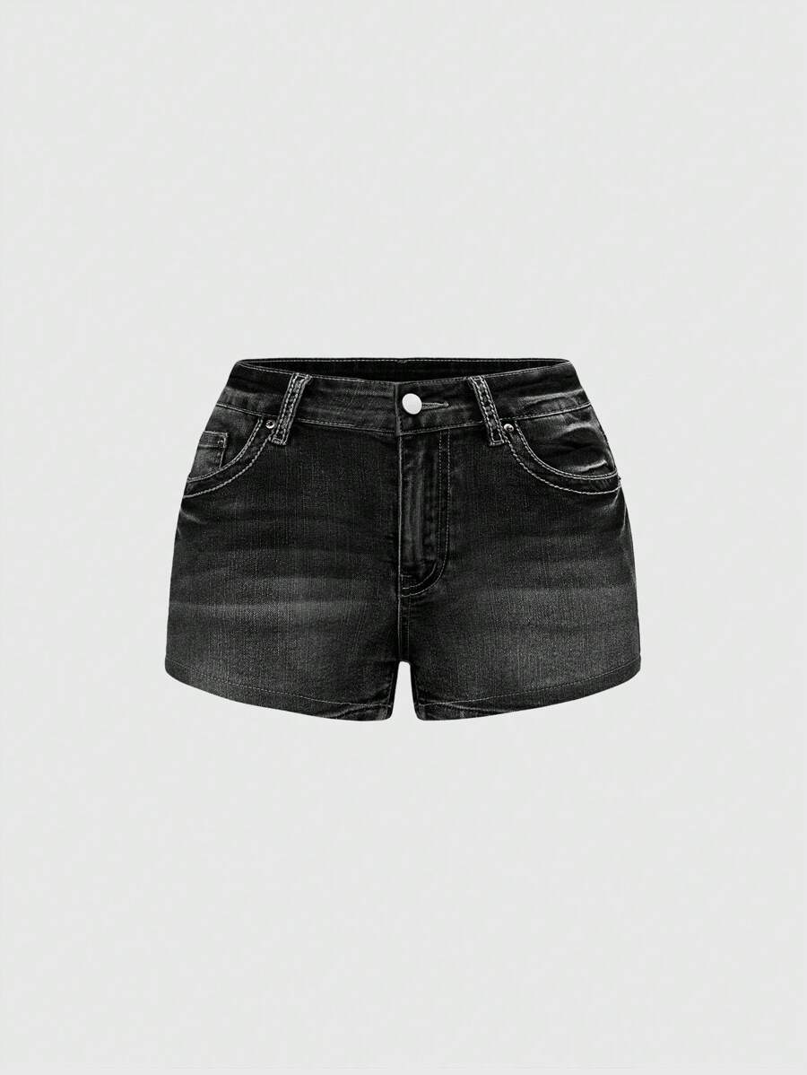 Grunge Punk Y2K Rhinestone Decor Embroidered Wing Design Low Waist Shorts