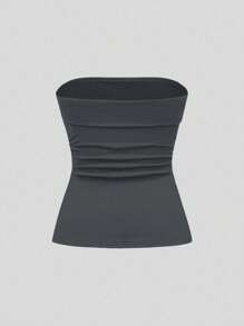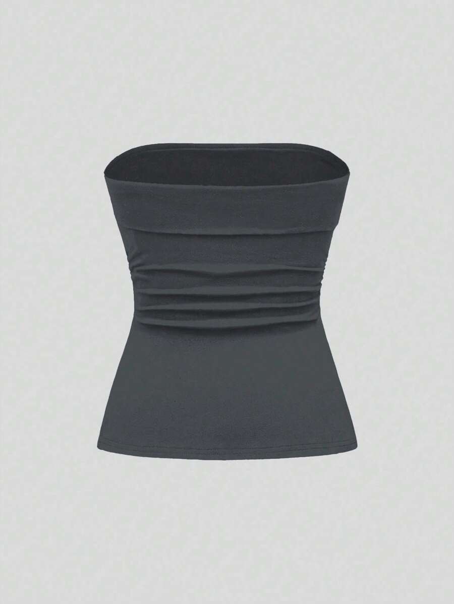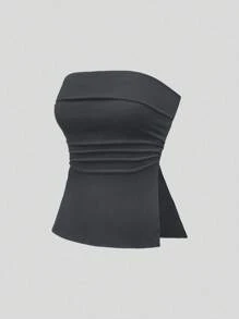 Grunge Punk Y2K Subculture Solid Cropped Bandeau Strapless Top With Slit Hem For Women