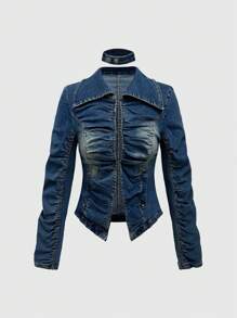 Grunge Punk Y2K Subculture Vintage Distressed Slim-Fit Ruched Denim Jacket For Women