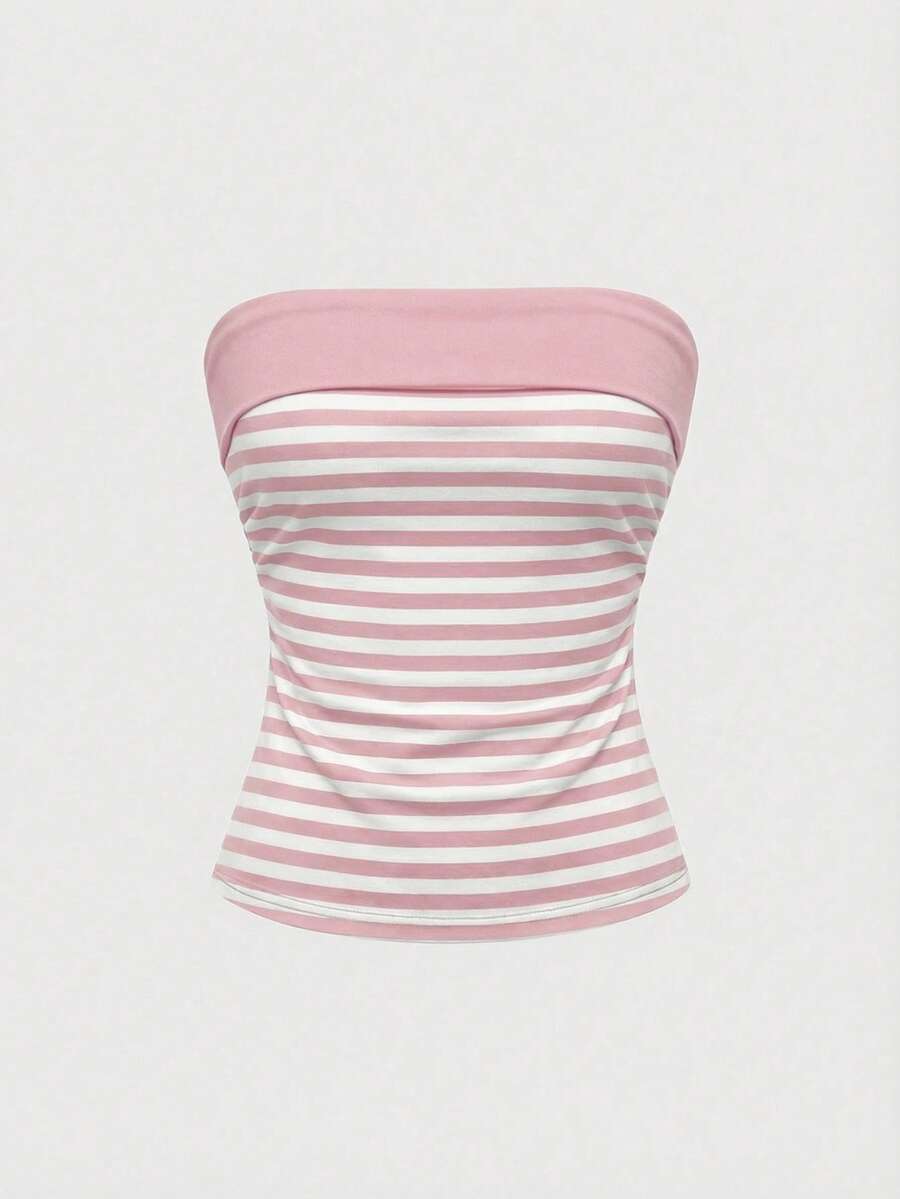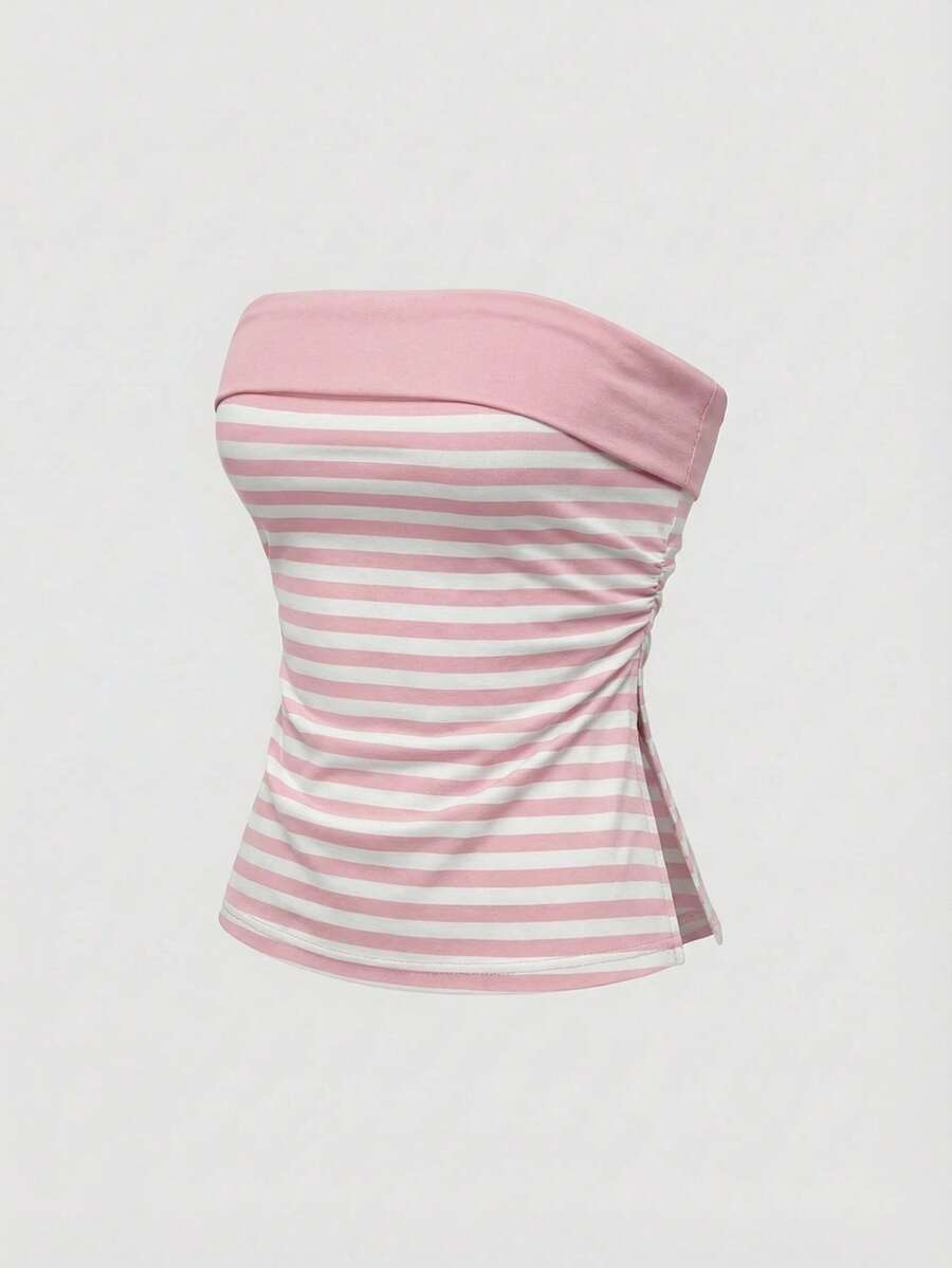 Grunge Punk Y2K Subculture Women's Striped Patchwork Cropped Cami Top With Slit Hem