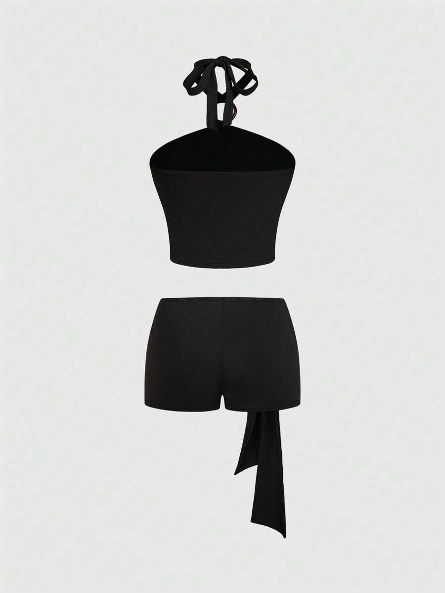 Grunge Punk Y2K Vintage Sexy Spaghetti Strap Crop Top And Ultra Low Waist Bodycon Shorts 2 Pieces Set