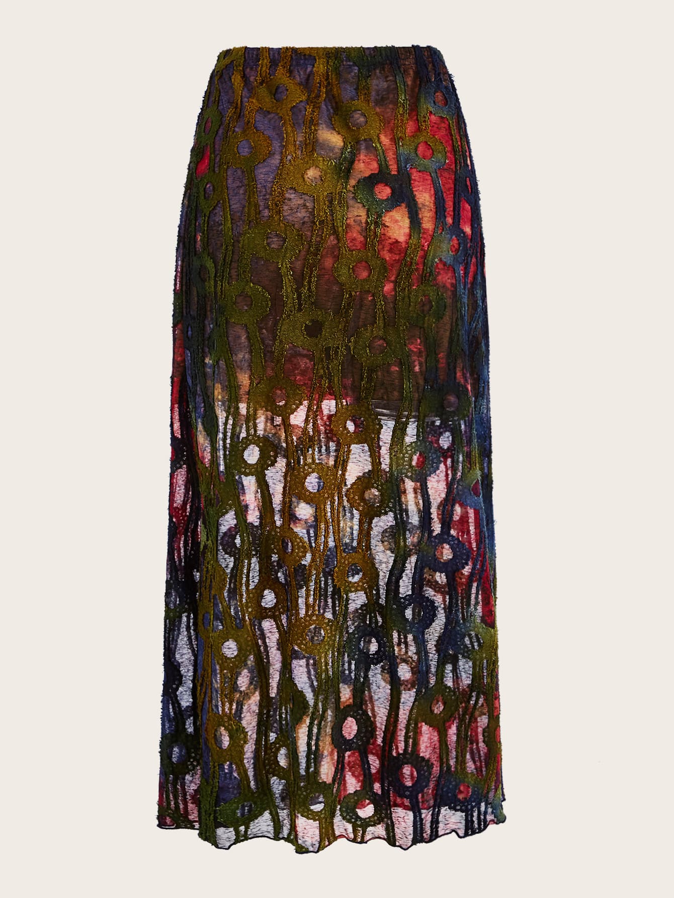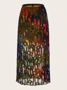 Grunge Tie Dye Lettuce Trim Mesh Skirt