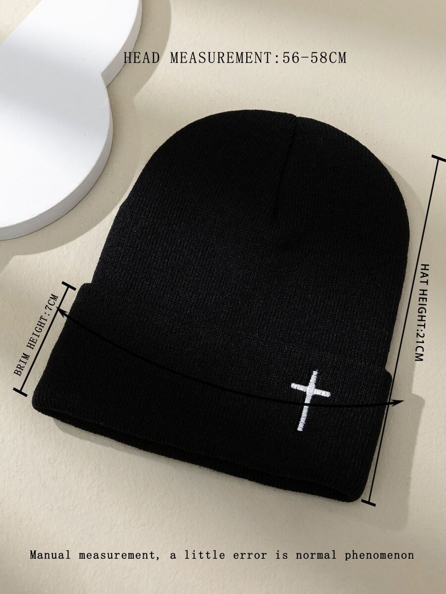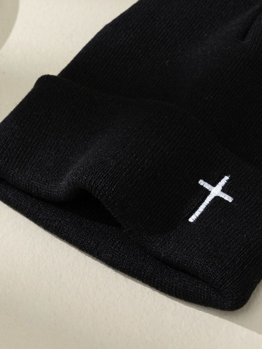 Guys Cross Embroidered Cuff Beanie