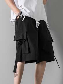 Guys Flap Pocket Buckle Tape Cargo Shorts