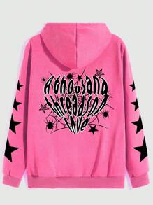 Street Life Men Letter & Star Printed Hooded Sweatshirt