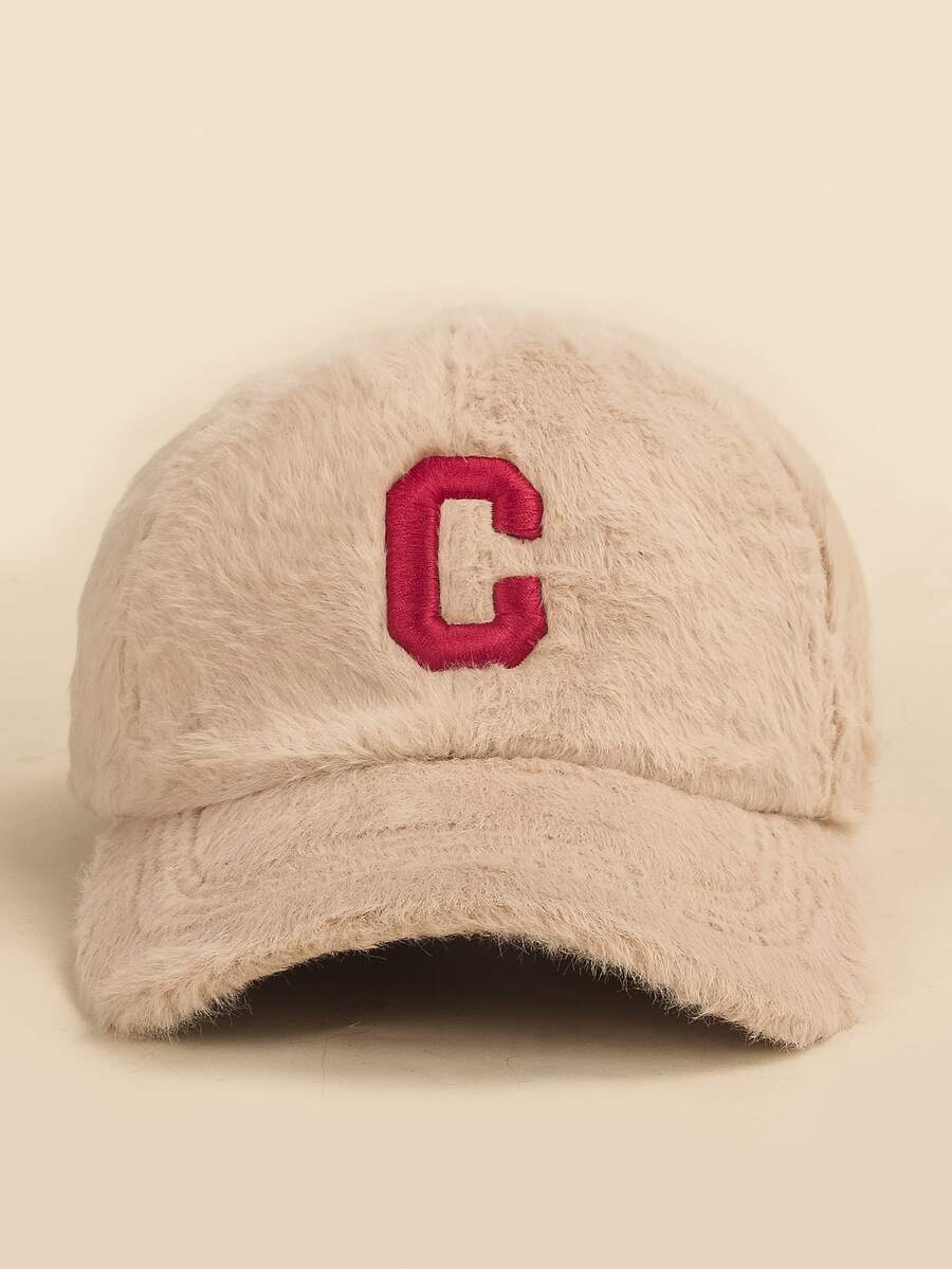 Guys Letter Embroidered Fuzzy Baseball Cap