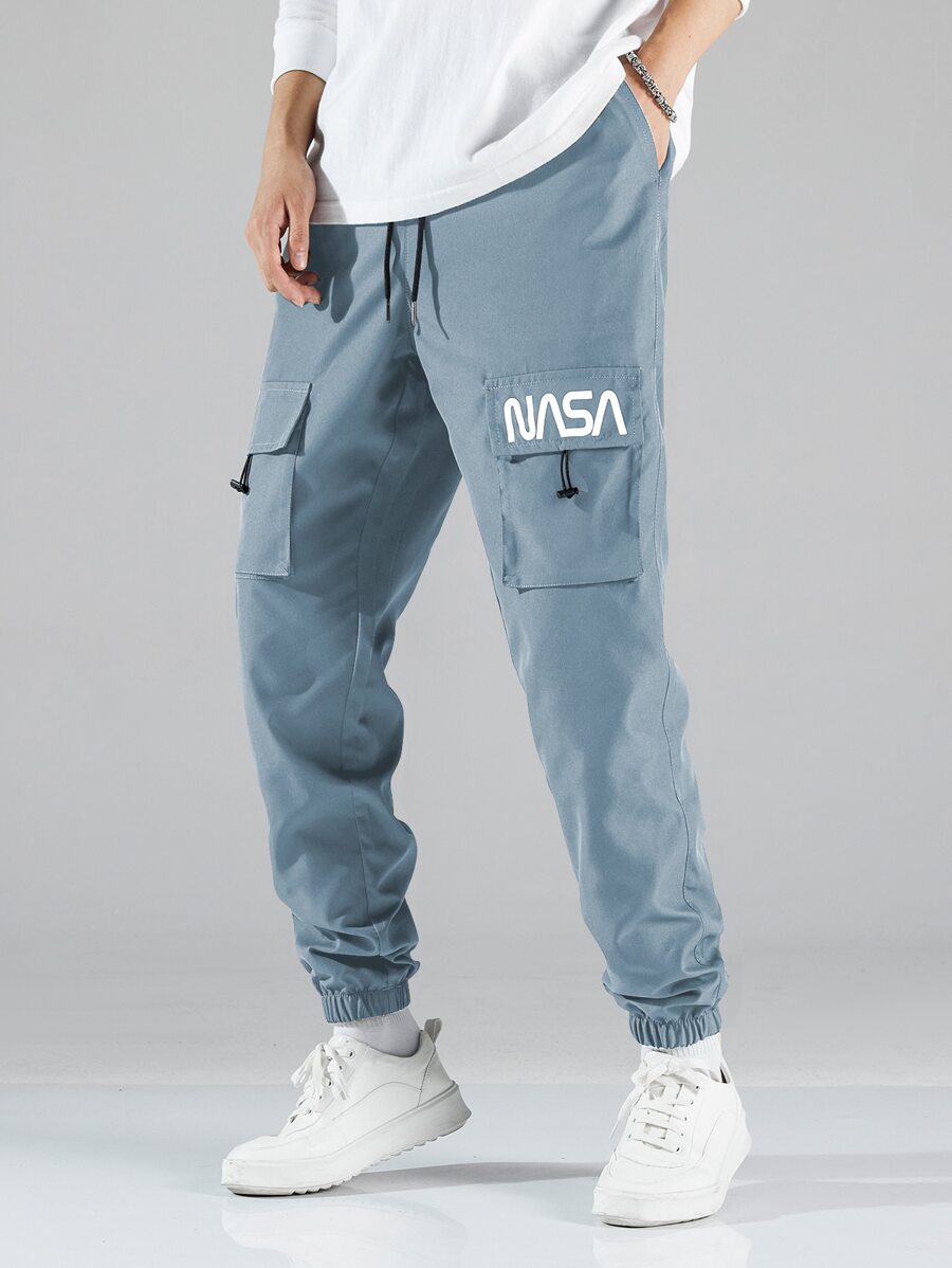 Guys Letter Graphic Drawstring Cargo Pants