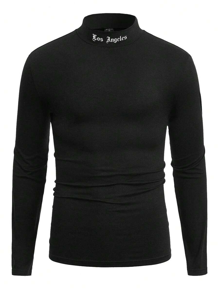 Guys Letter Graphic Mock Neck Tee