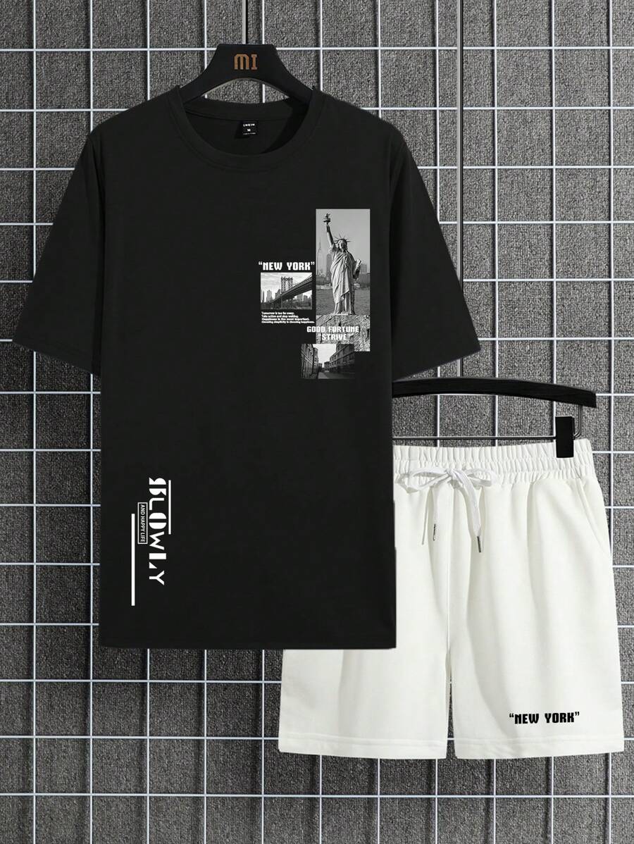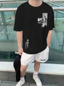 Guys Letter Graphic Tee & Drawstring Waist Shorts
