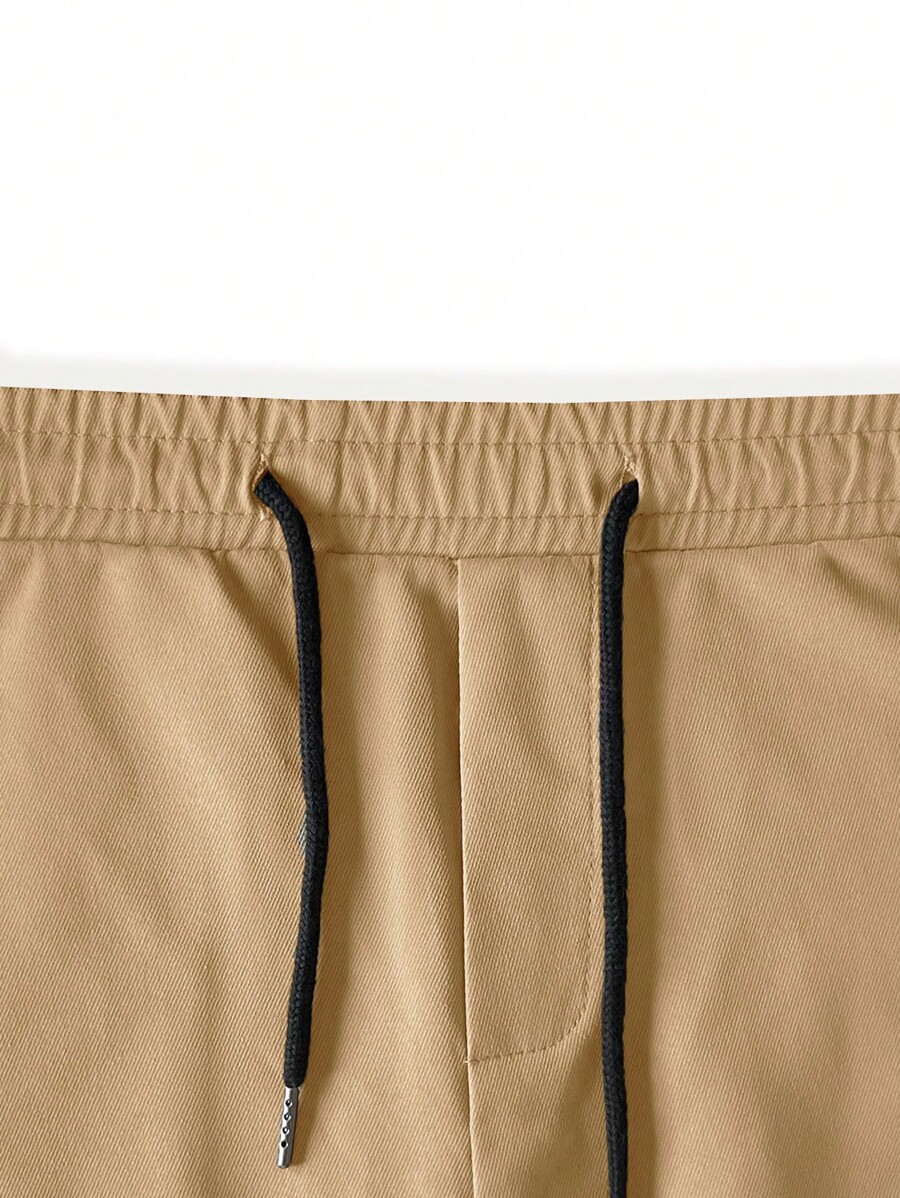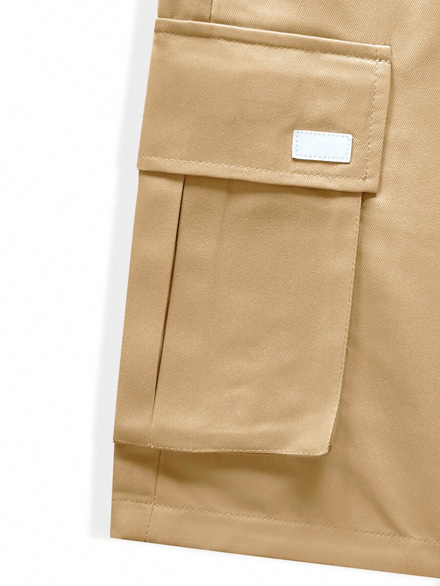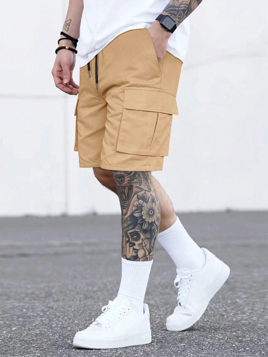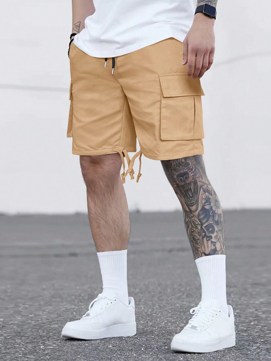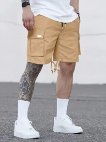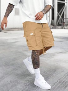 Guys Patched Detail Flap Pocket Drawstring Waist Cargo Shorts