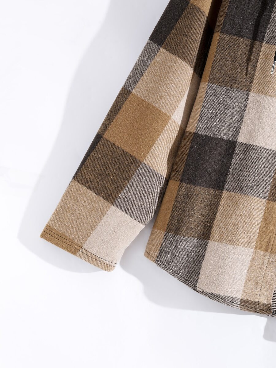 Guys Plaid Print Drawstring Hooded Overcoat Without Tee