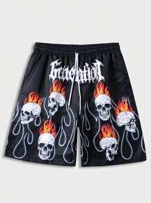 Guys Skull & Fire Print Drawstring Waist Shorts
