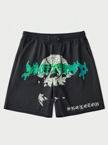 Guys Skull Letter Graphic Drawstring Waist Shorts