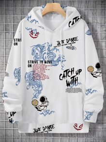 Guys Slogan & Cartoon Graphic Drawstring Hoodie