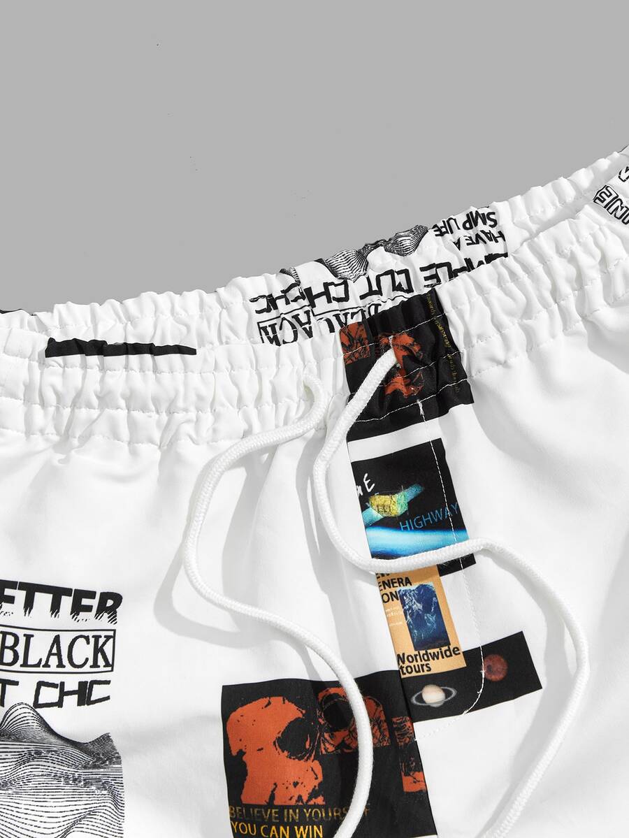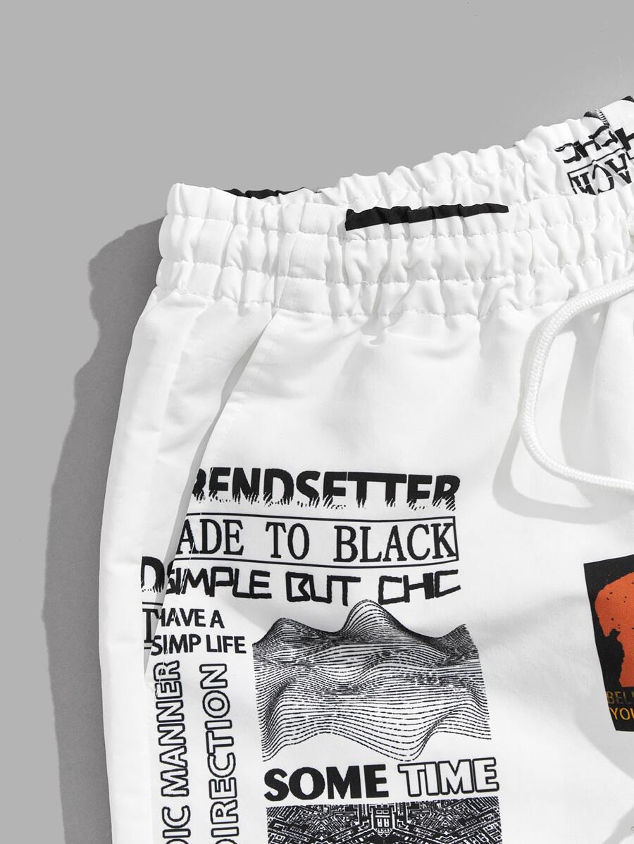 Guys Slogan Graphic Drawstring Shorts