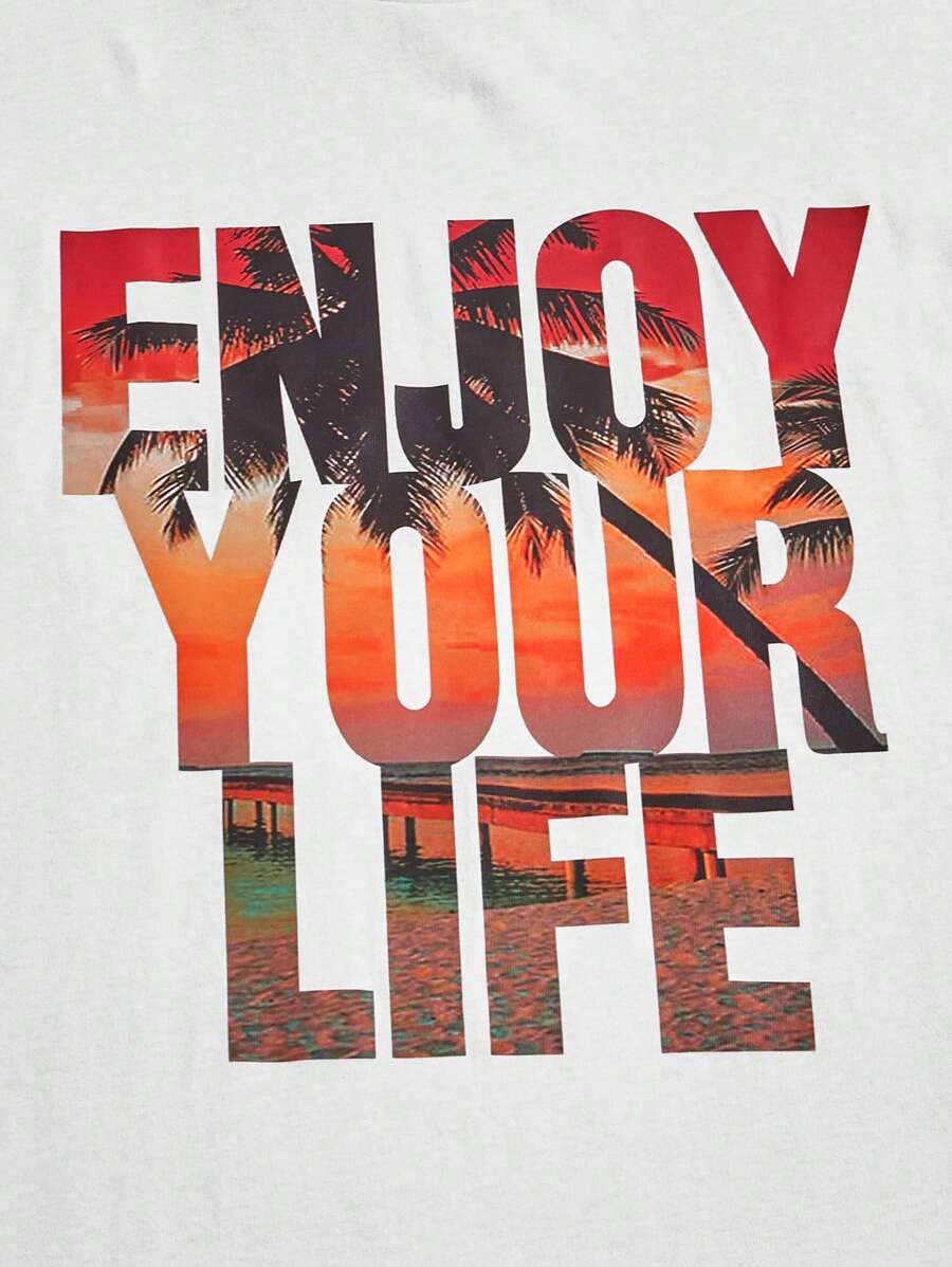 Guys Slogan Graphic Tee & Drawstring Waist Shorts