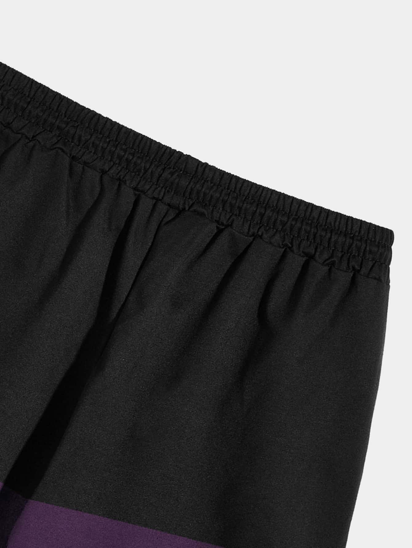 Guys Slogan Graphic Two Tone Drawstring Waist Shorts