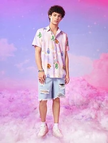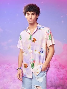 ROMWE X Care Bears Guys Tie Dye Bear Print Shirt
