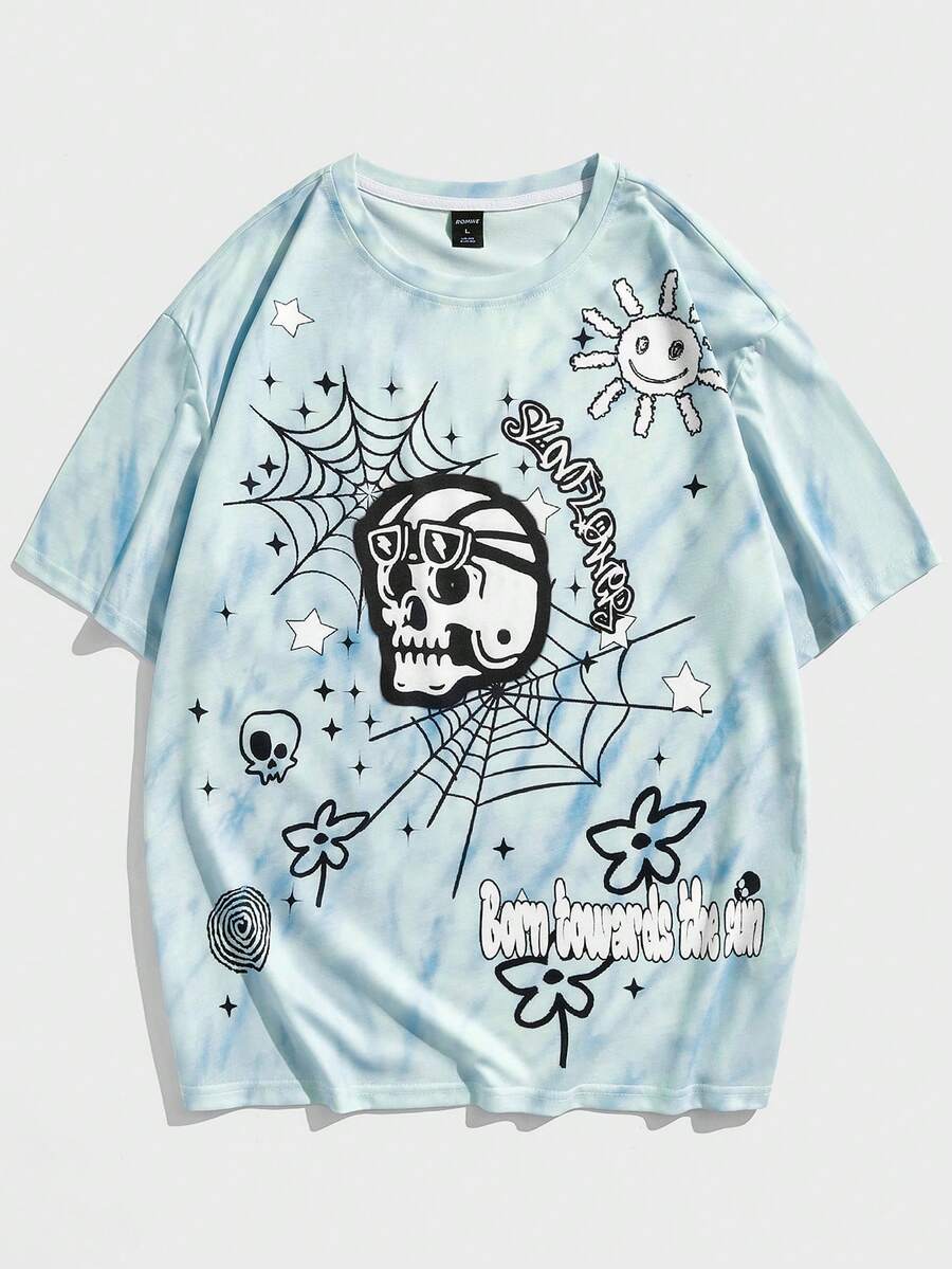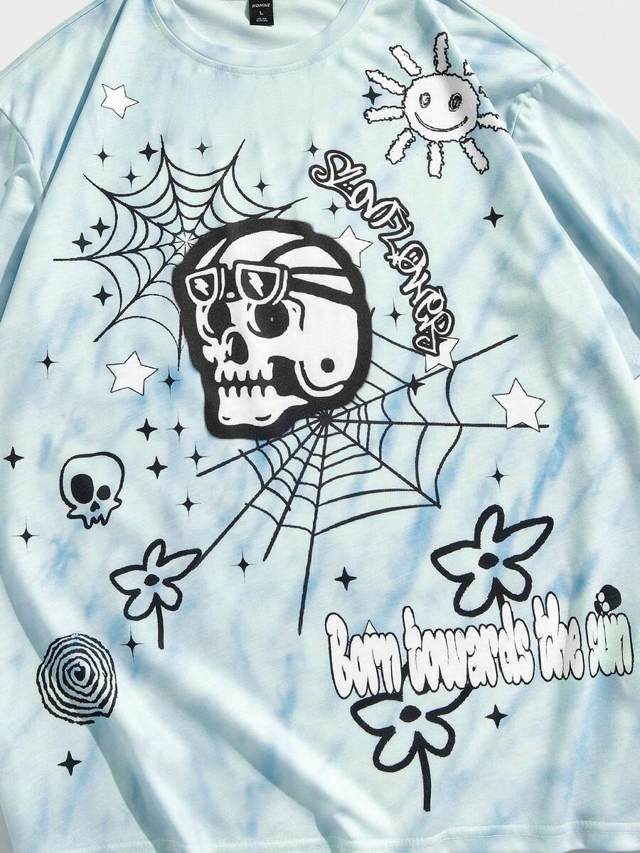 Street Life Guys Tie Dye Skull & Slogan Graphic Tee