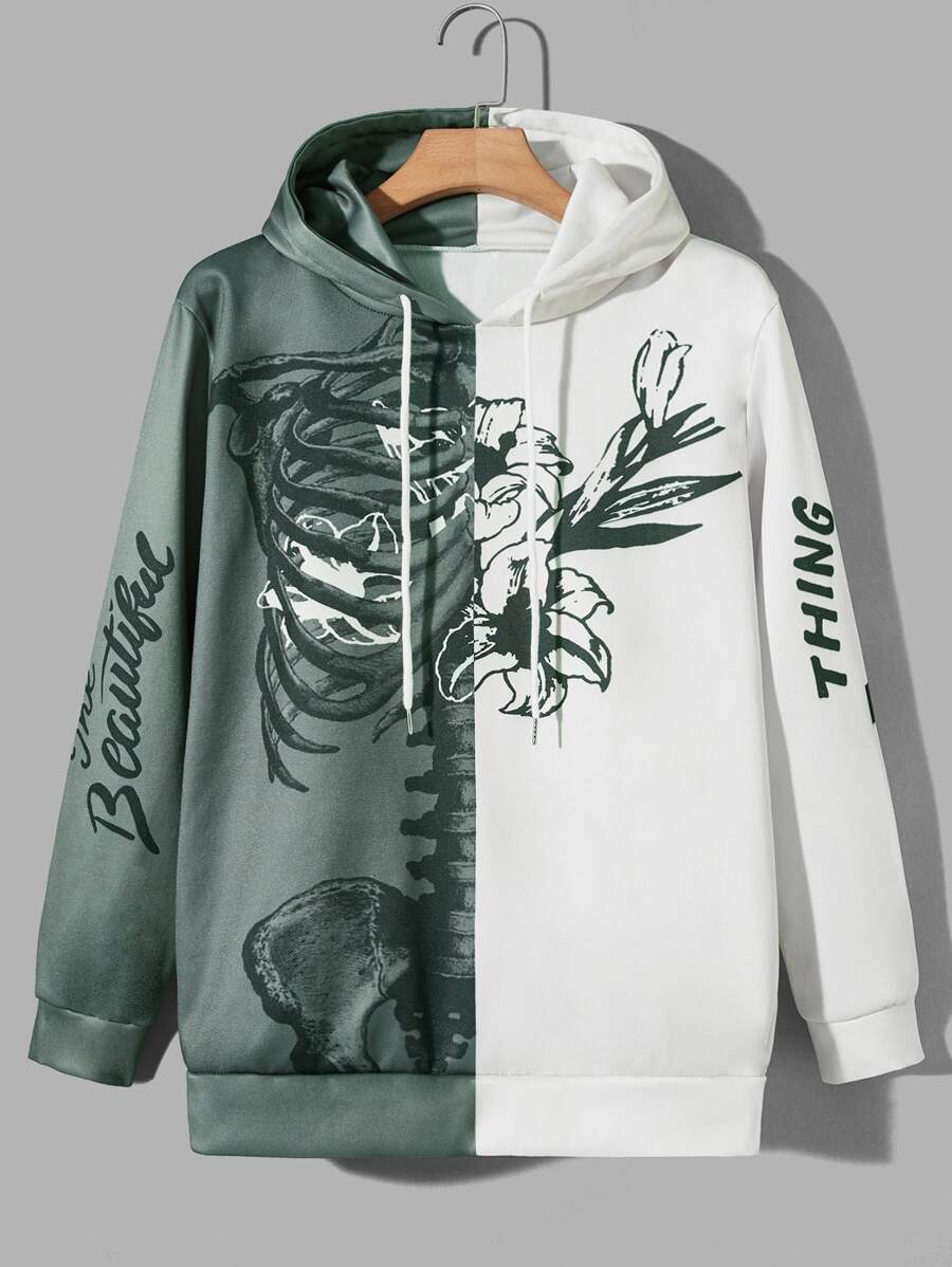 Guys Two Tone Skeleton Print Drawstring Hoodie