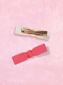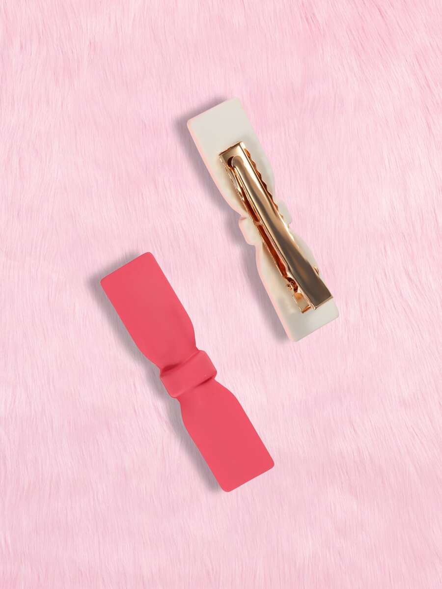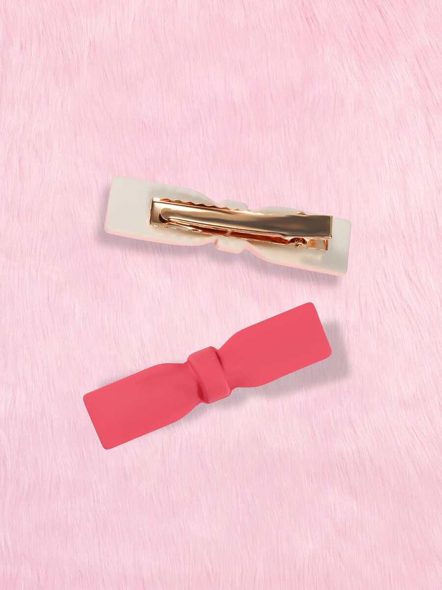 2pcs Women Solid Bow Decor Sweet Style Alligator Hair Clip