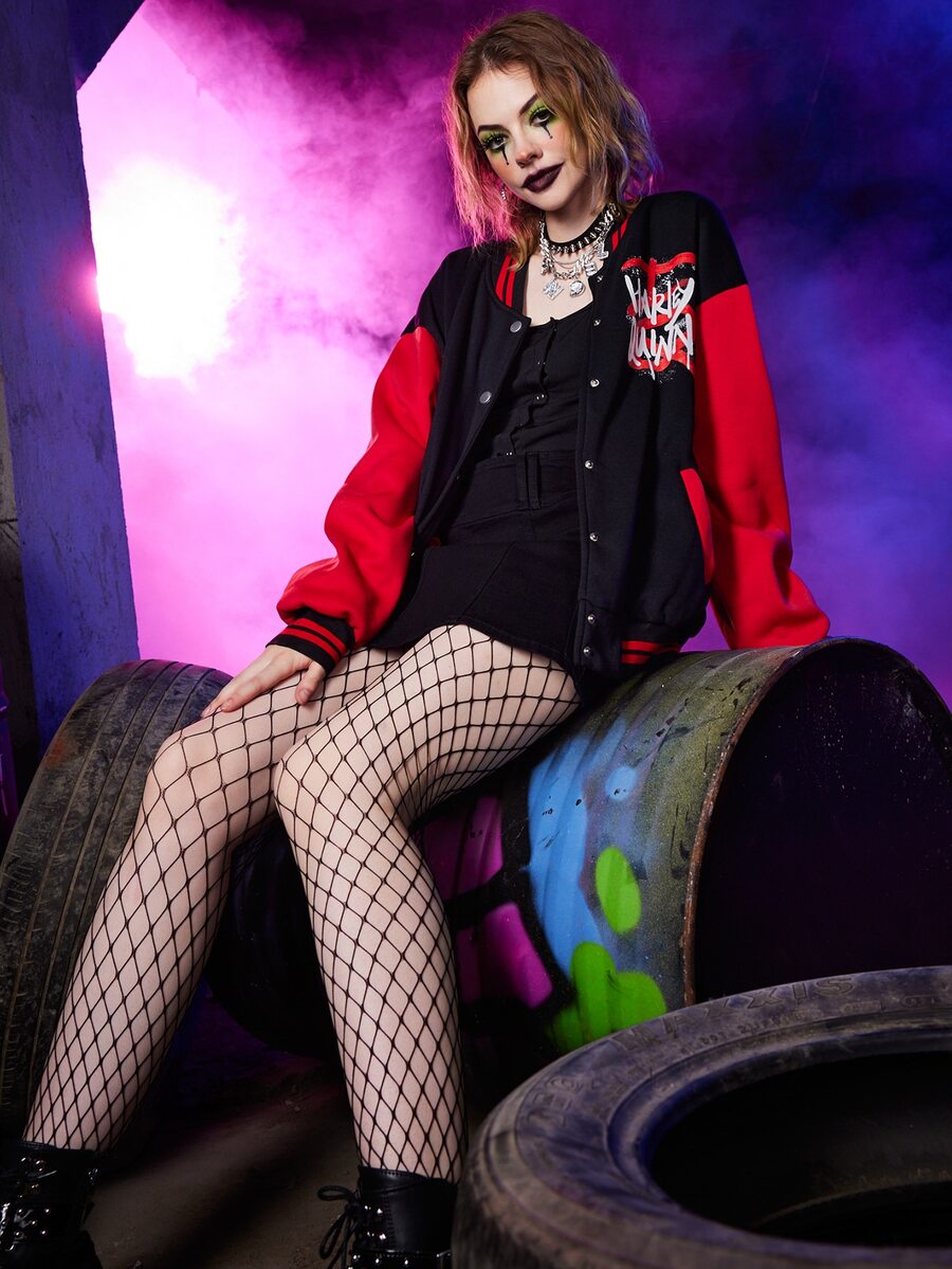 Harley Quinn | ROMWE Letter Colorblock Button Front Varsity Jacket