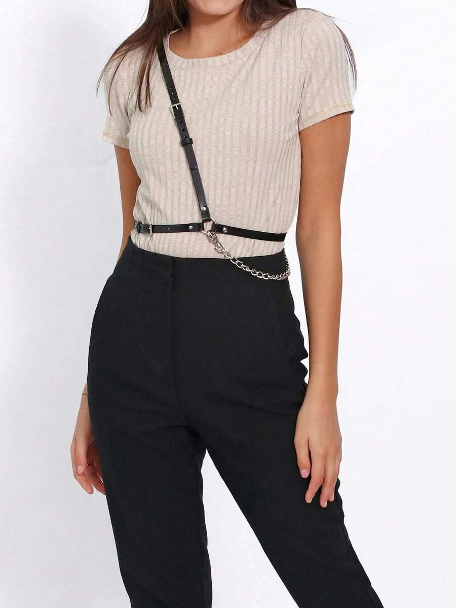 1pc Women Square Buckle Chain Decor Fashion Harness Belt